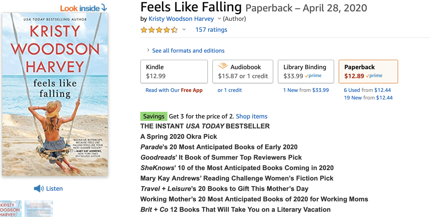 Looking for a summer read? My USA TODAY Bestseller Feels Like Falling is part of Amazon’s 3 for 2 sale right now!